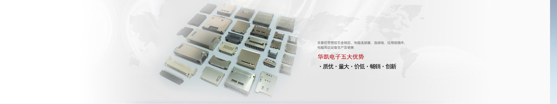 鄱陽縣華凱電子科技有限公司位于鄱陽縣城北工業園區,成立于2008年06月,主要經營塑膠五金制品、電腦連接器、連接線、儀用接插件、電腦周邊設備生產及銷售。公司成立以來,一直奉行“客戶至上,追求質量”的宗旨,貫徹“質優、......